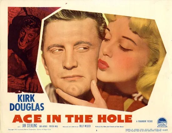 Ace in the Hole (1951) (also Edith) was the one out of all of these that probably surprised me the most. I believe this might have been my introduction into Kirk Douglas. I totally understand the hype- what an incredible confident energy he has, and he really steamrolls through this entire film like a bat outta hell. Some very great lines in this such as: